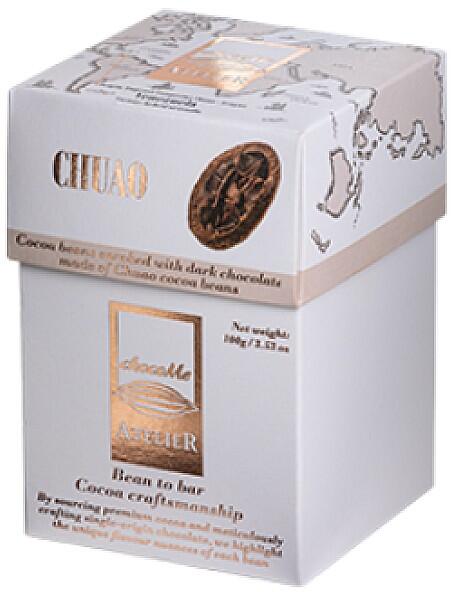 A legtökéletesebbnek tartott kakaó‑ és csokoládé ízét úgy tudtuk drazsé formában megtartani, hogy magát az általunk pörkölt Chuao‑ból származó kakaóbabot drazsíroztuk a szintén Chuao‑ból származó kakaóbabokból készített étcsokoládéval.