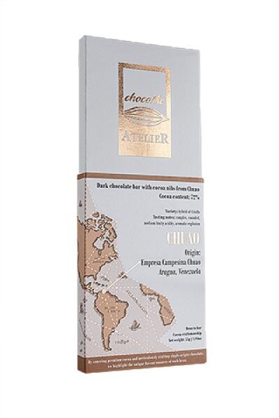 Chuao‑ból származó pörkölt kakaóbab törettel kellemesen ropogós textúrát kölcsönzünk a csokoládé táblának, miközben csak a Chuao ízekre koncentrálhatunk.