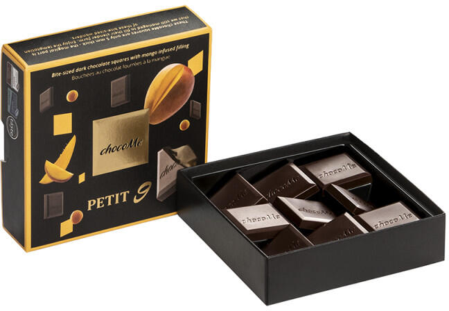 chocoMe Falatnyi étcsokoládé lapocskák karamell és mangó töltelékkel