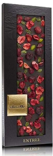 chocoMe Valrhona 66% étcsokoládé, Brontei pisztácia, liofilizált meggy darabkák