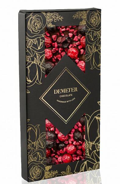 Demeter Chocolate Étcsokoládé málnával, piros és fekete ribizlivel