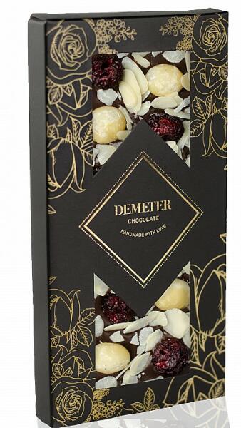 Demeter Chocolate Étcsokoládé mandulával, makadámdióval és meggyel