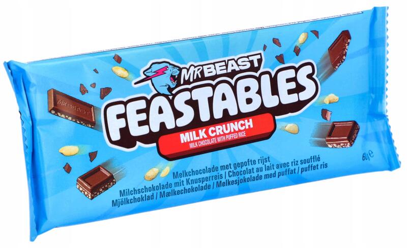 Feastables MrBeast Csokoládé Feastables Crunch 60g Milk Tejcsokoládé Rizzsel Eredeti Usa (4515)