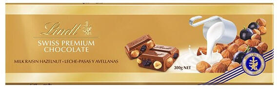 Lindt Csokoládé LINDT Gold Traube-nuss mogyorós-mazsolás tejcsokoládé 300 g - papir-bolt