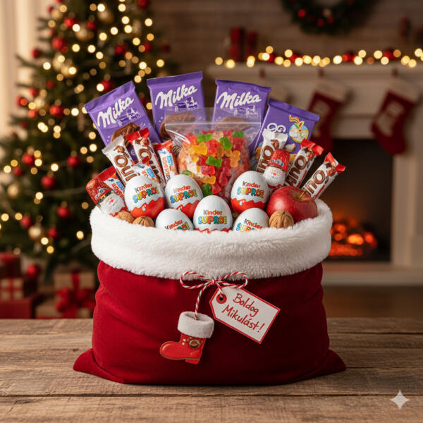 A csomagot nagyon aranyos mikulás zacskóba csomagolva küldjük, kifejezetten prémium csokikat tartalmaz, kinder, milka, mars, snickers, milky way, tehát olcsóbb szeletes csokikat NEM tartalma a csomag. Előfordul benne maci kávé, de a limitált verzió, vagy mézeskalácsos szívószál