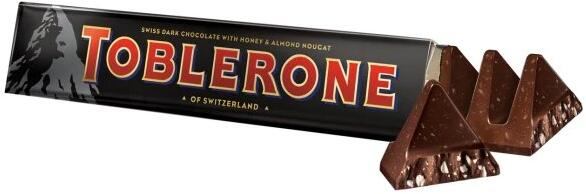 Toblerone Étcsokoládé mézes-mandulás nugáttal 100g Svájci étcsokoládé mézes-mandulás nugáttal (10%). Összetevők: kakaómassza, cukor,   Tejes   zsír, méz (3%), magok   mandula   (1,6%), kakaóvaj, emulgeálószer ( szója   lecitinek),   Tojás   tojásfehérje, étcsokoládé kakaó szárazanyag-tartalma legalább 50% Allergének: mandula, tojás, tej, szója Tápértékek 100 grammonként: Energiaérték 2235 kj / 535 kcal Zsírok 32,5 g ebből telített zsírsavak 19,5 g Szénhidrát 50g ebből cukrok 47g Fehérjék 6,3 gramm Só 0,03 g