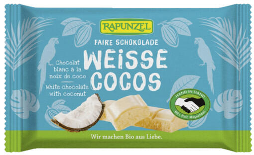 Rapunzel Kókuszos fehércsokoládé BIO 100 g Fehér csokoládé élvezet finom kókuszdió darabkákkal és valódi Bourbon vaníliával – a Rapunzel HAND IN HAND partnerei által a fair trade kritériumai szerint gyártott. A válogatott alapanyagok mellett a konchálás az igazi titok a nagyszerű csokoládé mögött. A konchálás egy olyan művészet, amely lépésről lépésre haladva teljes mértékben kibontakoztatja a kakaóban rejlő gazdag ízeket, és tökéletes finomságot és lágy, semmihez sem fogható simaságot kölcsönöz a csokoládénak.