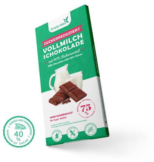 A Simply Keto tejcsokoládénk le fog nyűgözni ízével és tápértékeivel! Ez a tejcsoki 70%-kal kevesebb szénhidrátot és 75%-kal kevesebb cukrot tartalmaz, mint a hagyományos tejcsokoládé. A csokoládéban nincs hozzáadott cukor, csak az összetevőiben, így például a tejporban természetesen előforduló cukrokat tartalmaz.