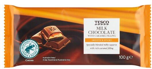 Tesco tejcsokoládé karamell töltelékkel 100 g