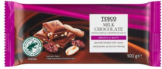 Tesco tejcsokoládé mazsolával és földimogyoró darabokkal 100 g